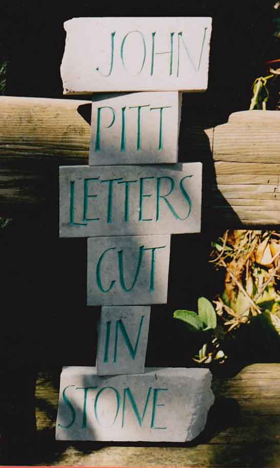 These are pieces I made some years ago. The first is a sort of sign for what I do, cut in limestone and coloured.