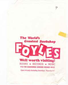 Then of course there was the ‘greatest bookshop in the world’ – Foyles, which I used to visit often as a teenager and young man. It had a reasonable second-hand selection, while the general stacks occasionally offered up gems that had been left unsold for generations: this was the pre-computer stocktaking period.