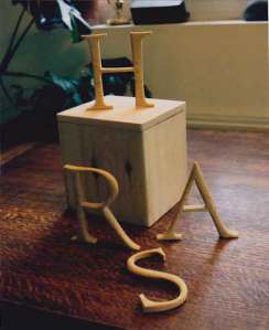 These were roughly cut from Pine and then hand finished. I forget when they were made, but probably in the mid 1990s. The box was Pine too.