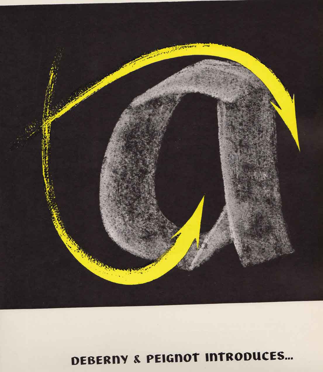 The French use of type has always interested me. As far as I am aware it is not a nation known for pre-eminence in stone cut lettering, though it has its good share of fine typographers and type designers. I came across this example from a Penrose album of 1954. It illustrates some typefaces from the Deberny and Peignot foundry, but I like this one