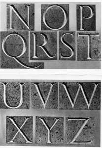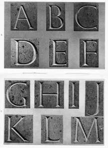 I am a letter carver, among other things, and I thought I should return, albeit briefly, to that passion. These illustrations come from a little booklet first published by the Victoria and Albert Museum, London, in 1928, although I have the revised edition of December 1938. The booklet reproduces a number of alphabets, but this one here was cut by Gill in Hoptonwood stone in 1927, with the exception of U, the text states, “which Mr Gill kindly recut in 1938”.