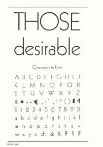It inspired other designers, among them Rudolf Koch who designed Kabel, made public also in 1927. Lawson notes that in the lowercase the ‘e reaches back to the VEnetian period in its retention of the slanted crossbar’ while in the uppercase ‘several letters are unique in having slanted stroke endings’.