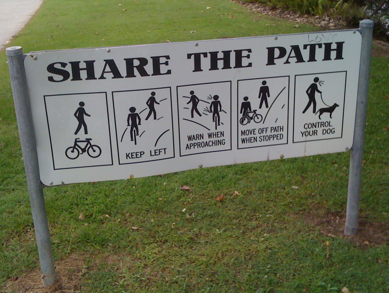 There’s some wonderful, quirky signage around where I live. None more so than this piece of urban art. Just love the characterisation given to the stick figures, especially the cyclist and the bell. Why can’t more signs be like this?