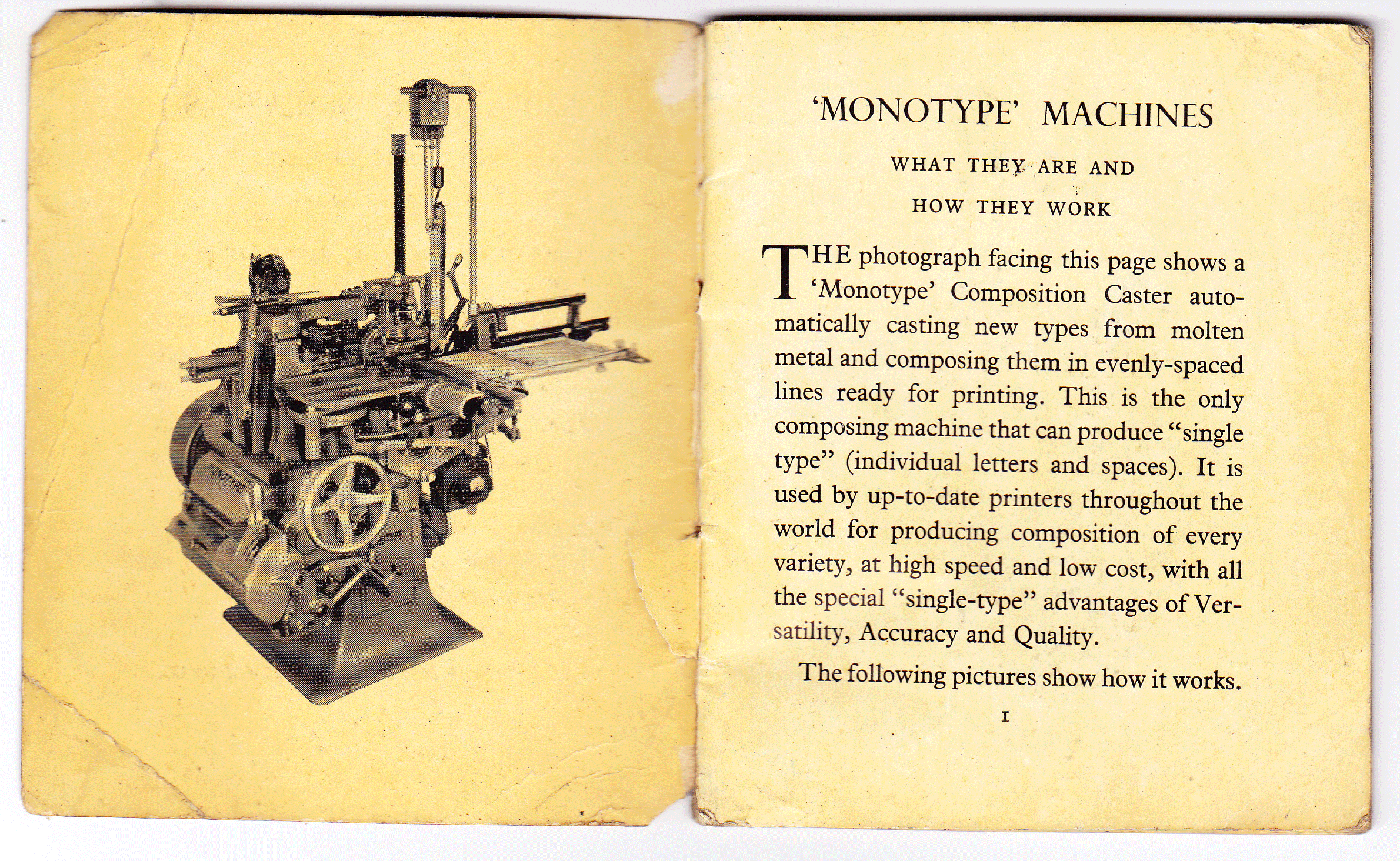 Of all the advances made in typography during the last century none surely rates more important than the Monotype Composition caster and keyboard. Okay, I declare an interest. In the 1990s I owned one of these machines and on it cast the type for the private press books I printed under the Beeches Press imprint.