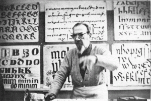 One paragraph stands out for me. “When he became interested in something like paleography, he wrote to EA Lowe of Princeton. This contact resulted in many pleasant weekends with this Oxford scholar in the company of Stanley Morison and Marvin Newman. ‘We used to go see God every weekend!’ recalls Bank. He also wrote to Alfred Fairbank who was the author of A Handwriting Manual. Their correspondence on Renaissance paleography and italic handwriting is now in portfolios in the Cambridge University Library in England and is available for researchers on these subjects.”