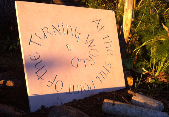 Polished marble, at 60cm x 50cm, infilled with grey acrylic. Text from TS Eliot. [Carver – J Pitt, July 2011.]