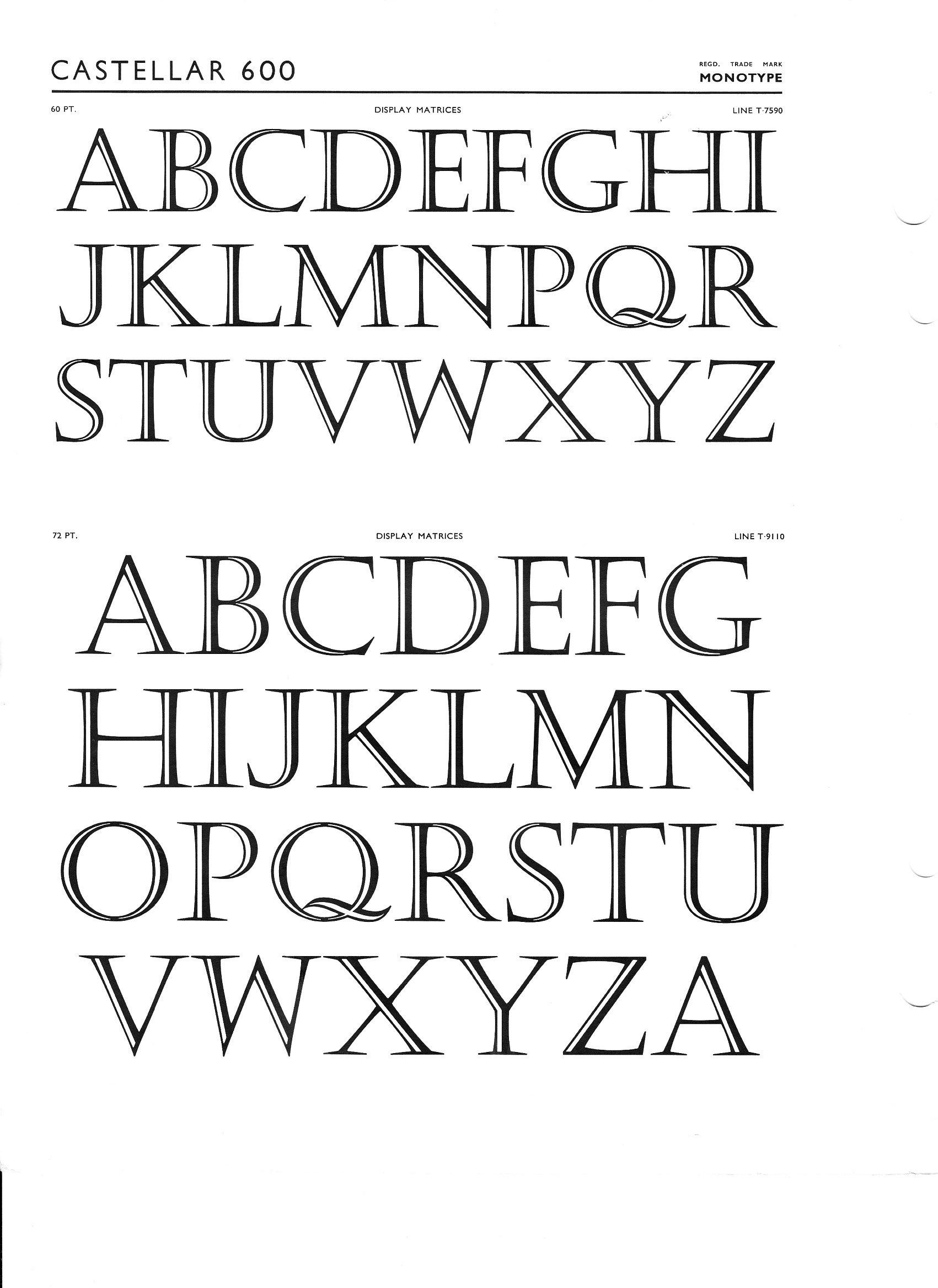 What I did not know was that Peters also designed a number of other faces for Monotype, sadly not used, including the one shown here, Traveller,