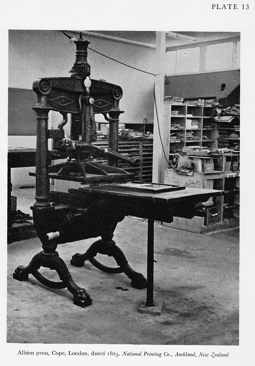 The reference to my comrades in NZ is the fact that when this article was written, according to Stone, an Albion was still in daily use at the National Printing Co. of Auckland, in fact a 1825 model used for proofing. If those readers of this live in or near Auckland could do a bit of sniffing and find this press much gratitude will ensue (and no doubt another piece in the blog).