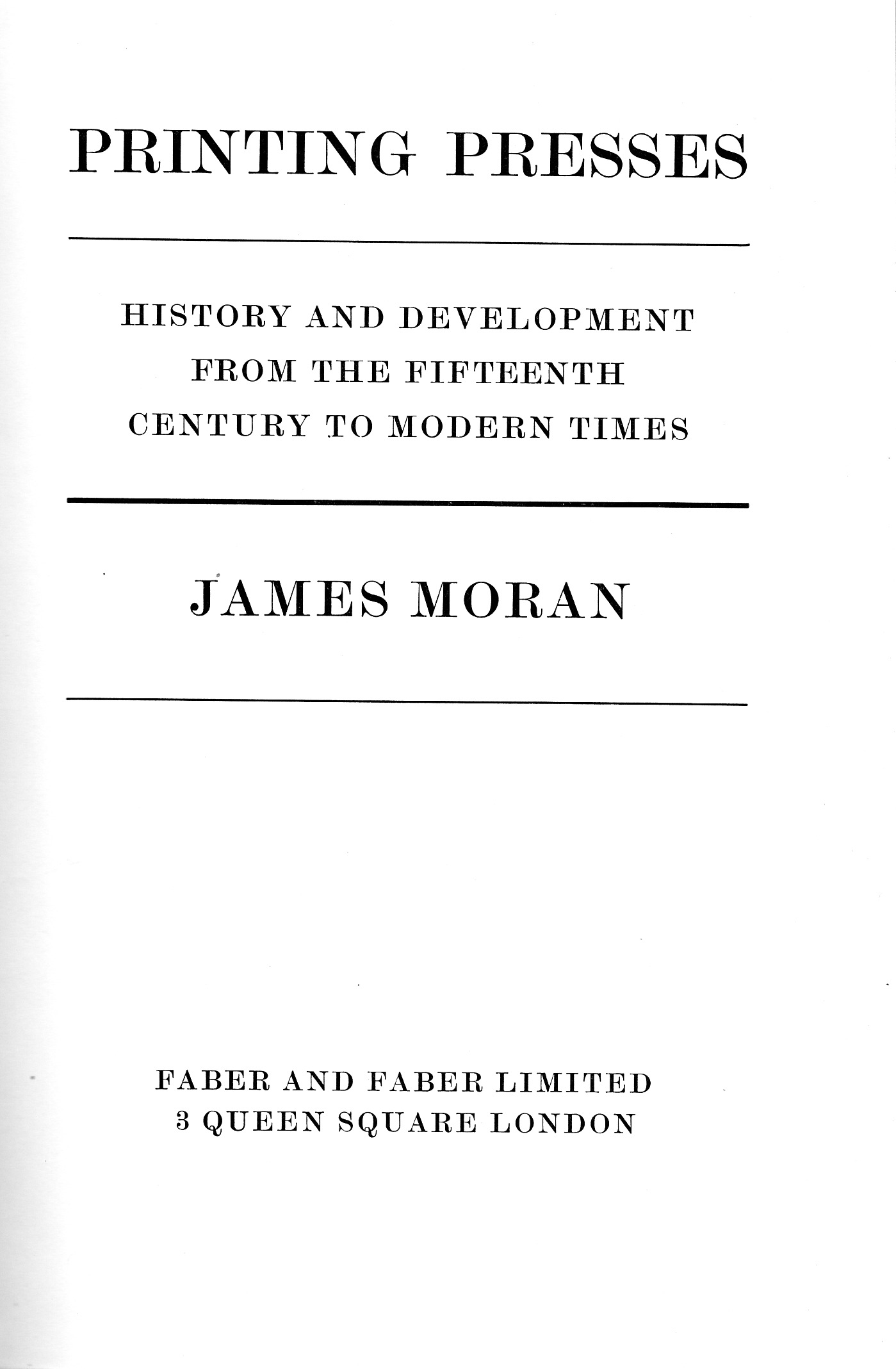 Stan writes: ‘…John Walter, with Koenig and Bauer, proved at the office of The Times what could be done for printing by driving the press by steam. This was the greatest revolution in printing since Gutenberg’ (p.39). Quite a statement and one that sent me to James Moran’s magnum opus, his superb Printing Presses. History and development from the fifteenth century to modern times (Faber and Faber, 1973).