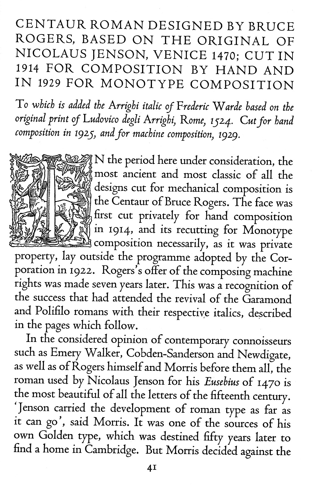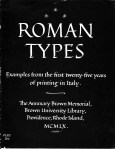 Sources: A Tally of Types, Morison, 1973; Encyclopaedia of Type Faces, Berry and Johnson, 1953; Roman Types, Brown University Library, 1960; and Great Books and Book Collectors, Thomas, 1975.