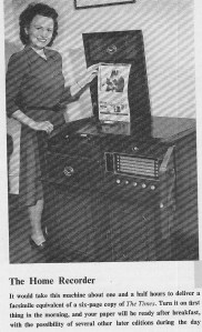Except you would need a cabinet (wood veneer of course) and to wait 48 minutes for a six page facsimile of the paper to be ‘downloaded’. In its own way, in its own time, the facsimile was the way of the future.