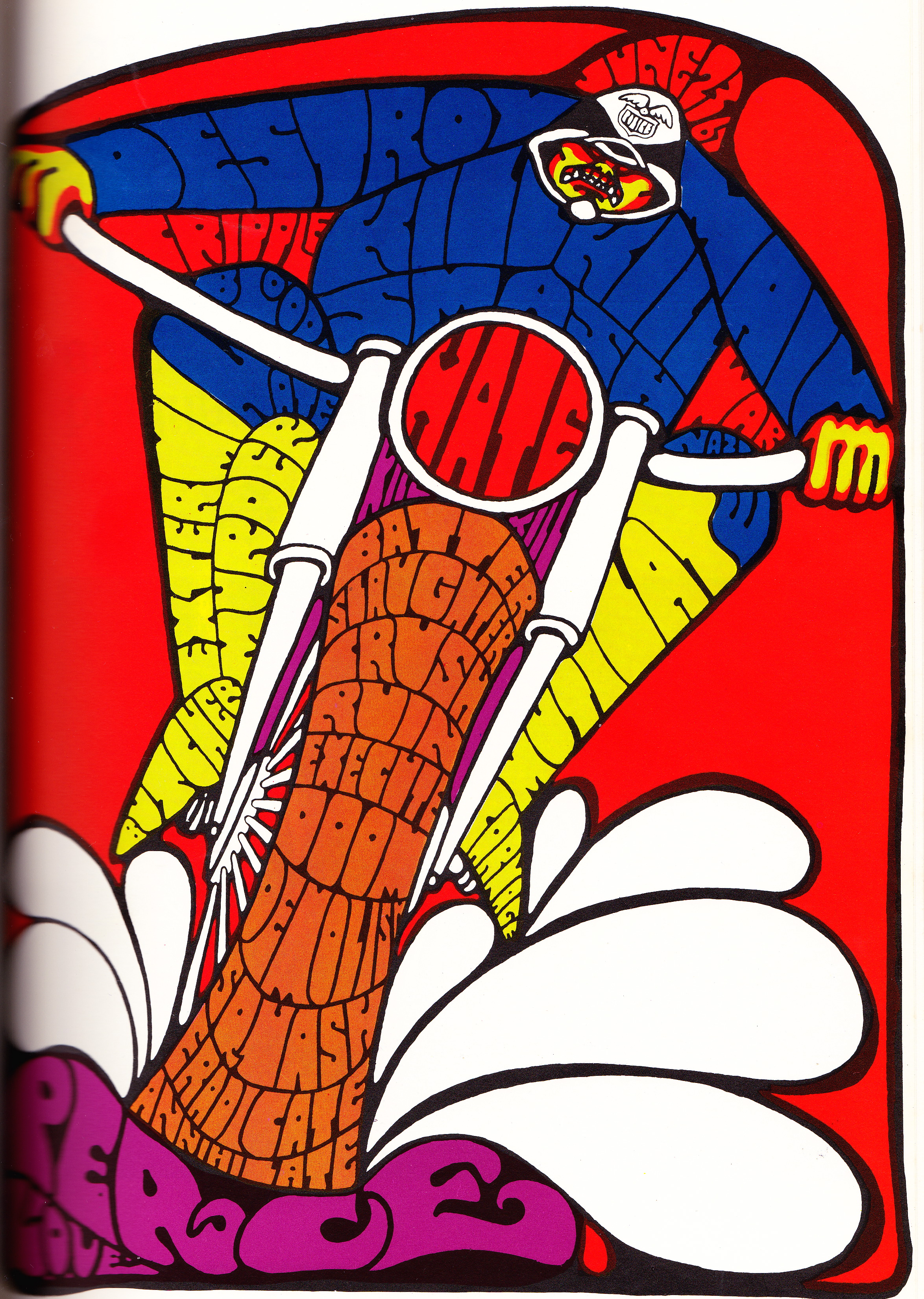 Taken from The Art of Lettering by Albert Kapr (1983), K.G.Saur, Munchen – English translation from the original first published 1971. The design is attributed to a US graphic artist. The date on the man’s helmet is June 23, 1967. Anyone have a clue what this poster is about?