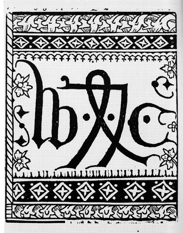 But before you do that a note on his device, shown below. I’d not paid it much attention before but after the broadcast I turned to a booklet about an exhibition presented at the British Library in 1977 (‘…to commemorate the Quincentenary of the introduction of printing into England’) to read that this early type of logo contains the numerals 47 or 74 placed within Caxton’s initials (WC). The significance of the dates are: 1447 Caxton gained the Freedom of the Mercers’ Company; 1474 Caxton published his first book in Flanders. The style of the woodblock, the entry continues, demonstrates that it was probably cut by a Gouda woodcutter ‘who supplied Caxton, Gerard Leeu and other printers with woodcut initials’.