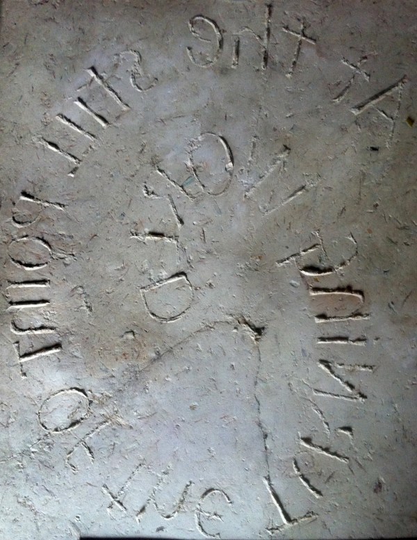 Paper, handmade, has long been an interest, and I recently made some, using 50 per cent Paper Tree Bark (native to Australia) and 50 per cent recycled newsprint, as an experiment. I then poured the mash into a frame on top of a piece of carved lettering to produce the image below in reverse. It’s a work in progress.