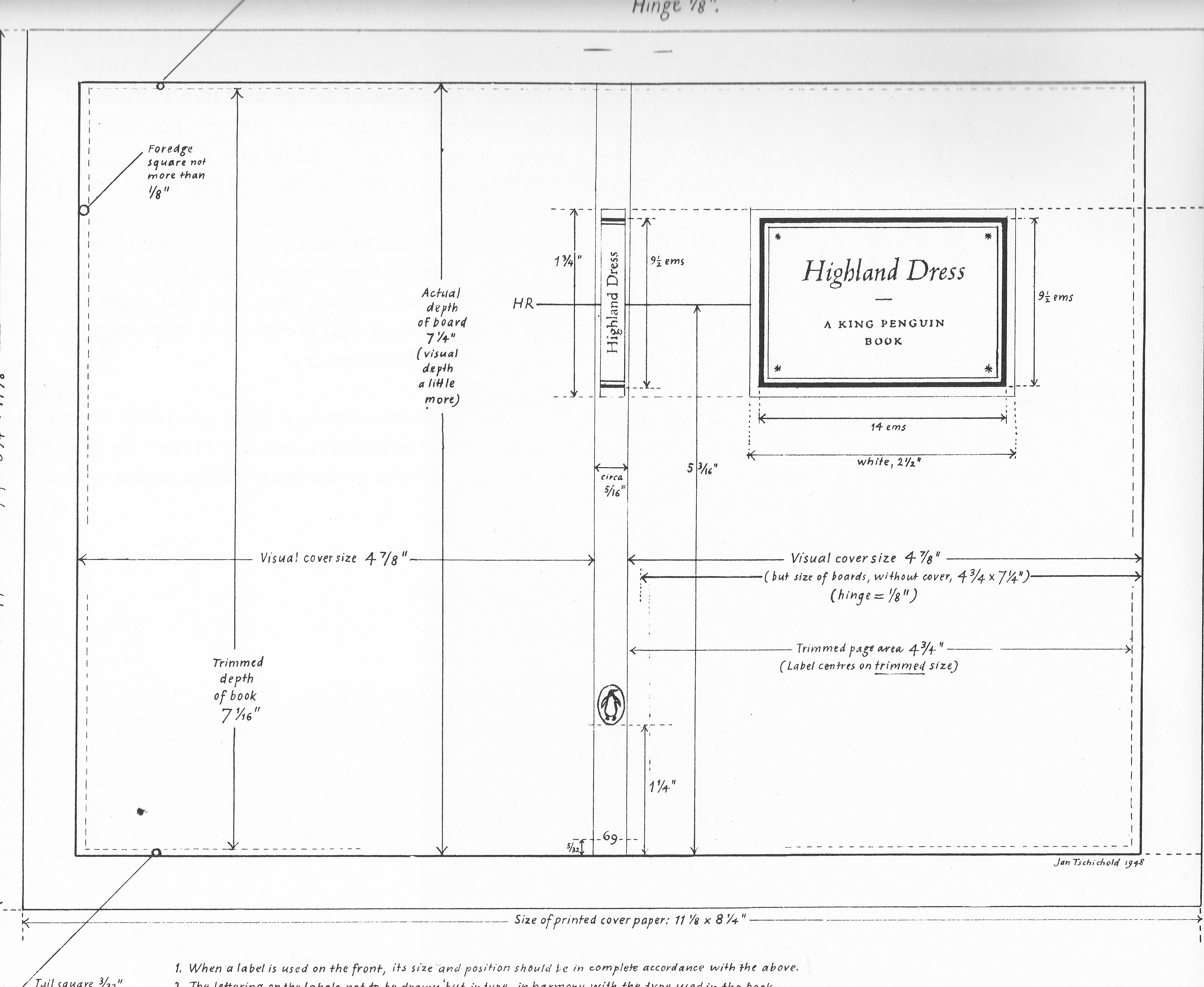 The title page is the window into the book. There can be few better examples than this one designed by Jan Tschichold when he was at Penguin (1947-1949). Set in Monotype Bembo capitals throughout it has an elegance and simplicity that speaks for greatness in typographic purity (I particularly enjoy the half-diamond parenthesis marks.) And below is an example of Tschichold’s rigorous eye for detail as shown in layout instructions to the printer. (Taken from Jan Tschichold: typographer [1975]. McLean, R. London: Lund Humphries.)