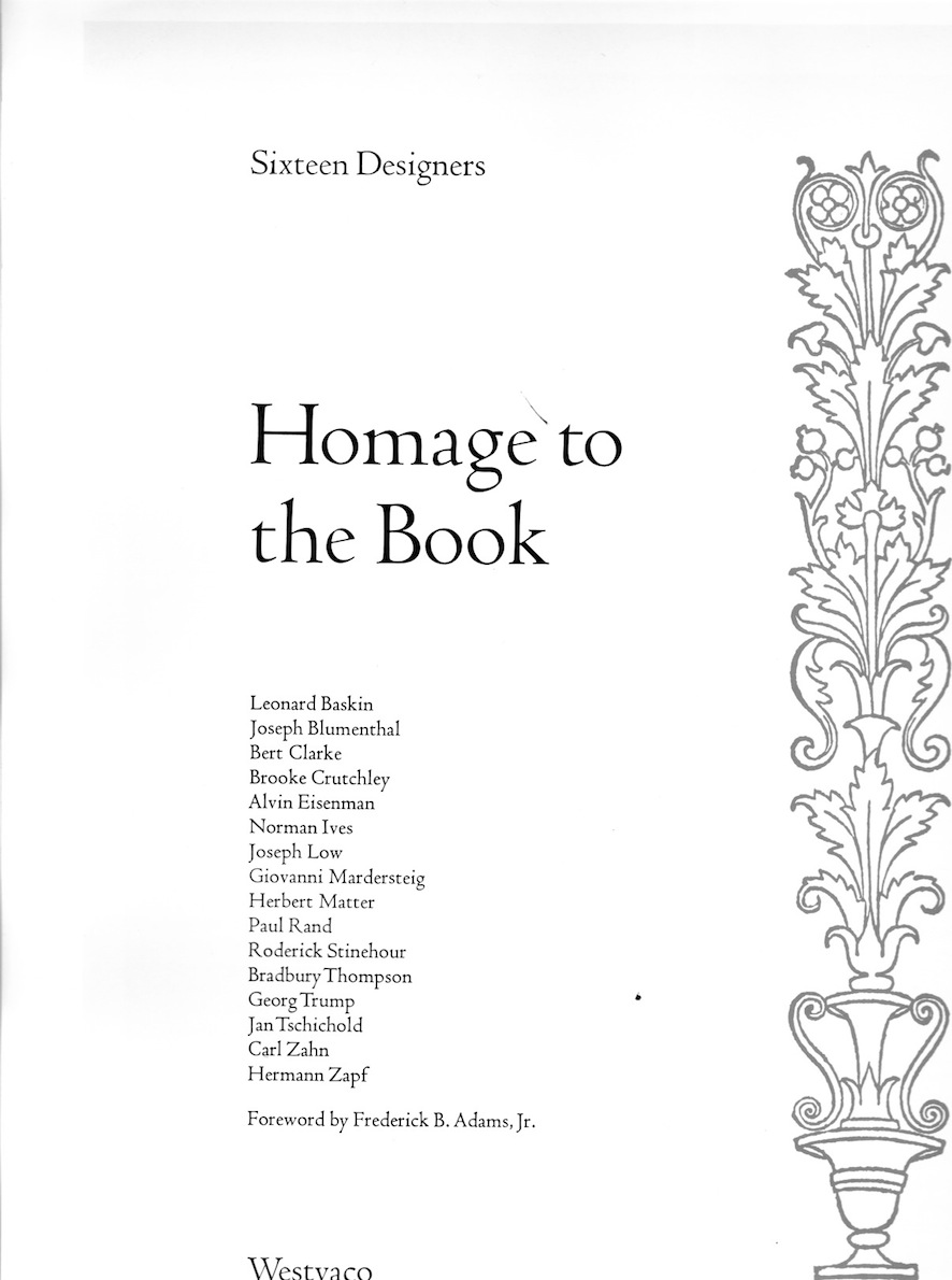 He was intimately involved with the Westvaco Corporation, a US-based paper manufacturer, and this led to many fruitful collaborations, including Homage to the Book.
