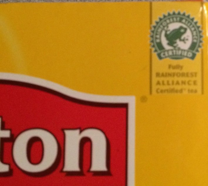 Now what exactly does that mean? Being green in colour this logo must be good. It says this tea has passed certain tests and measures set up by this or that group. I feel good about that too. Why, I have cheap tea (but not THE cheapest) and it is Rainforest Alliance certified. Great.