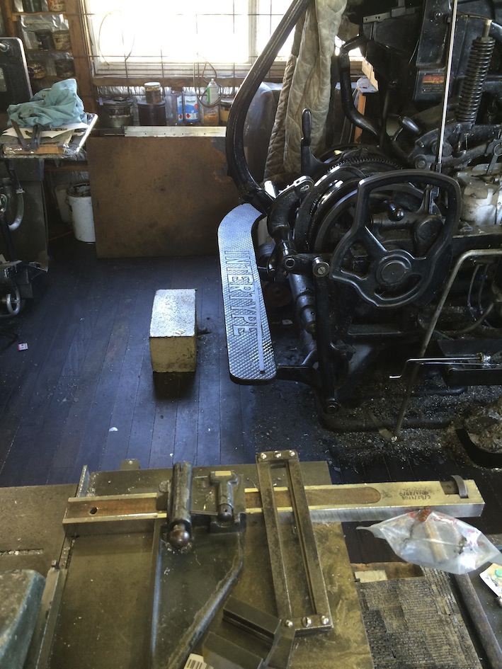 ‘The original Columbian printing press was replaced by a Wharfedale hand-fed machine…This was replaced by a modern Heidelberg cylinder press still in use today…A new typesetting machine, the Intertype, was installed at a cost of £3,288 in 1953.’